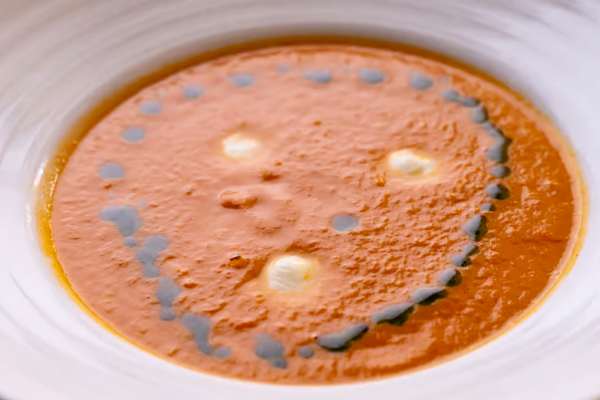 A rich, velvety roasted tomato soup made with vine-ripened tomatoes, slow-roasted to deepen the flavor. Finished with a drizzle of extra virgin olive oil and mozzarella.